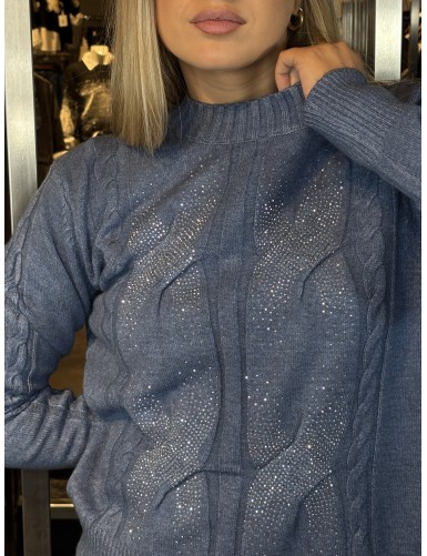 Pull à col rond et strass bleu CLAUDINE