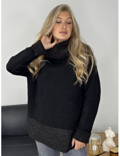 Pull col roulé avec paillettes  Coupe : droite  Matière : maille douce et chaude Manches : longues manches  Détails  : paillettes Couleur : noir...