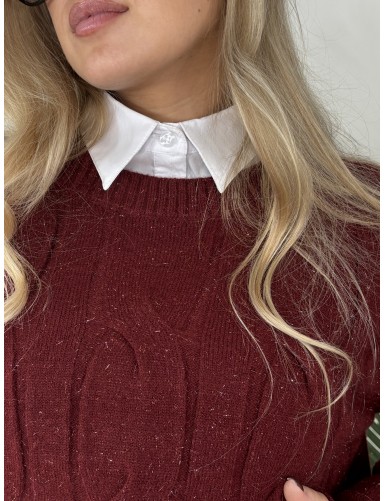 Pull rond Coupe : droite  Matière : maille douce et chaude Manches : longues manches  Couleur : bordeaux Composition : 50% viscose, 28% polyamide...