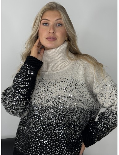 Pull col roulé avec sequins sur les manches Coupe : droite  Matière : maille douce et chaude Manches : longues manches  Détails  : sequins...