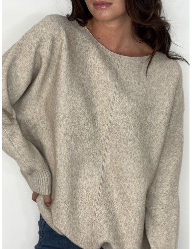 Pull col rond Serrage possible par devant  Couleur : beige Composition : 50% viscose, 25% modal, 25% polyamide La mannequin mesure 1m68 et porte...