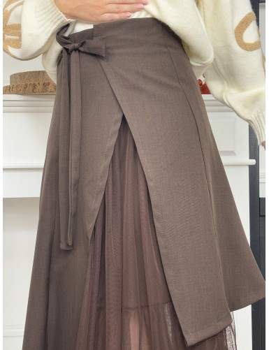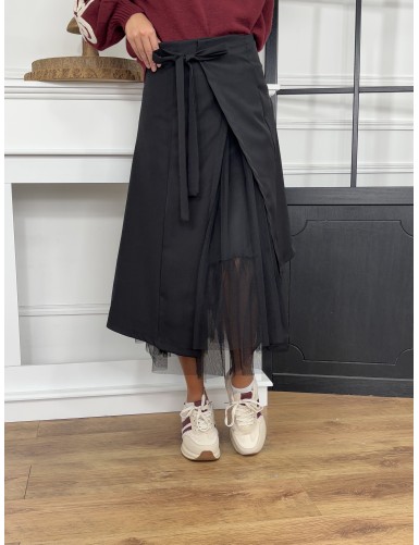 Jupe longue en tulle Coupe : droite et ample Taille haute pour mettre en valeur la silhouette  Fermeture : avec ceinture à nouer Couleur :...