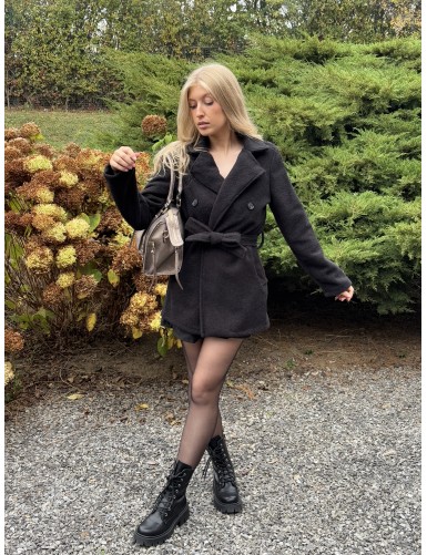 veste épaisse avec fermeture boutons et ceinture Matière chaude idéale pour la mi-saison Couleur : noire Composition : 100% polyester La...
