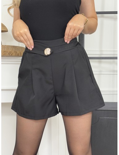 Short avec bouton doré Deux poches à l'avant Coupe : droite et courte Couleur : noir Composition :95% polyester , 5% élasthanne La mannequin...