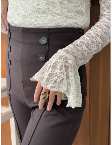 Chemise légère à sequins Col chemise Manches longues  Bouttonage à l'avant Coupe : ample Couleur : choco Composition : 100% coton  La mannequin...