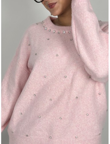 Pull col rond à strass Coupe : droite  Matière : maille douce et chaude Manches : longues manches  Détails  : strass Couleur : rose Composition :...
