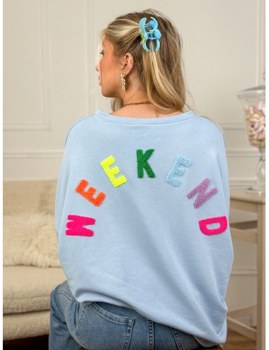 Pull col rond à motifs Coupe : droite  Matière : maille douce et chaude Manches : longues manches  Couleur : bleu ciel Composition : 64% coton,...