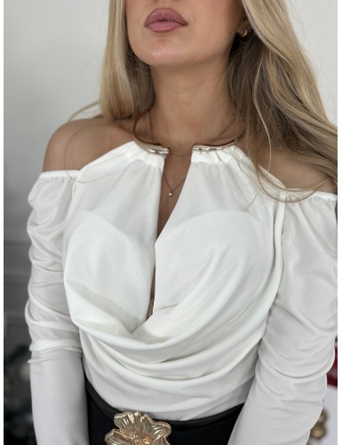 Blouse avec collier intégré et manches longues Coupe : fluide et légèrement ample Col roulé Couleur : blanc Composition : 70% polyester, 30%...