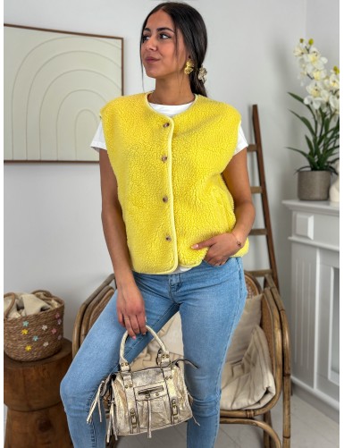 gilet uni doux Matière chaude idéale pour la mi-saison Couleur : jaune Composition : 100% polyester La mannequin mesure 1m68 et porte une taille...