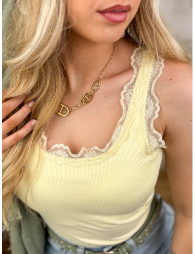 Top débardeur à dentelles jaune Monica