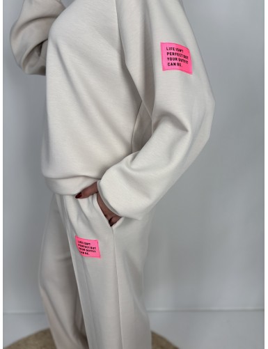 Ensemble casual uni Col rond Taille élastiquée  Longues manches  Coupe : large et fluide  Couleurs : beige Composition : 55% polyester, 39%...