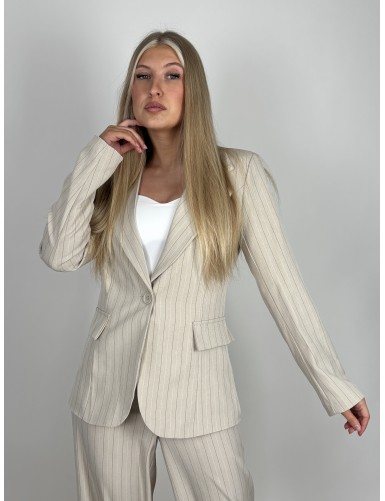 Blazer ligné beige Poche à rabat décoratives  Manches longues    Couleur : beige Composition : 51% viscose, 46% polyamide, 3% élasthanne La...
