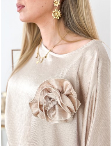 Blouse légère et manches longues Coupe : fluide  Détails : fleur en pins  Couleur : beige Composition : 100% polyester  La mannequin mesure 1m68...