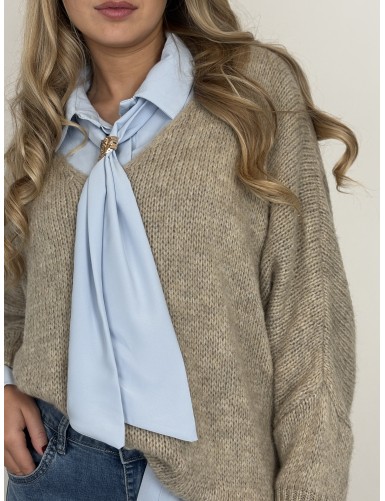 Pull col v uni beige Paula