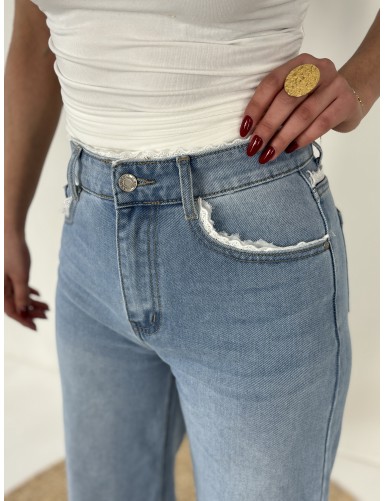 Pantalon ample jeans Coupe : droite Taille : avec passants pour ceinture Détails : dentelles, poches avant / arrière, fermeture zippée + bouton...