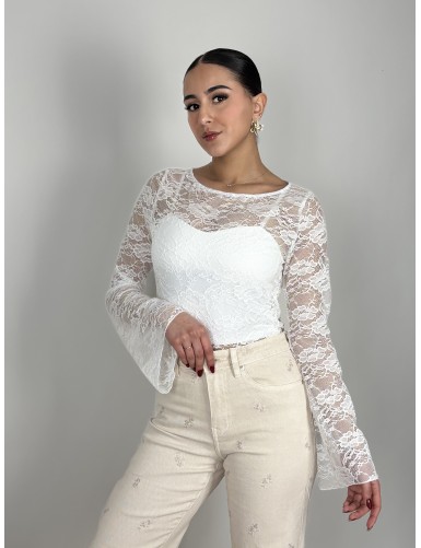 Pull col rond à dentelles Coupe : droite  Matière : maille douce et chaude Manches : longues manches  Détails  : dentelles Couleur : beige...