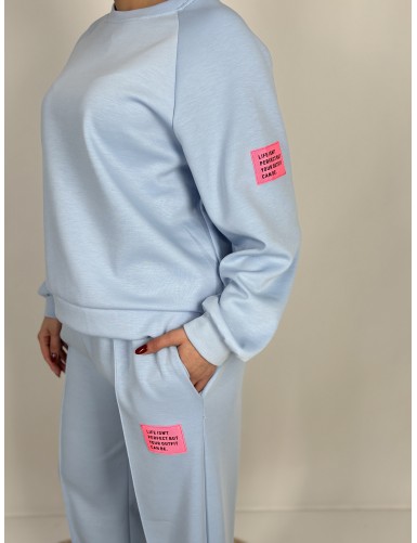 Ensemble casual uni Col rond Taille élastiquée  Longues manches  Coupe : large et fluide  Couleurs : bleu Composition : 55% polyester, 39%...