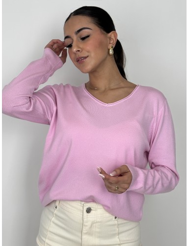 Pull col V uni Coupe : droite  Matière : maille douce et chaude Manches : longues manches  Couleur : rose Composition : 50% viscose, 28%...