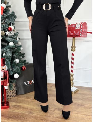 Pantalon style ample Coupe : ample Détails : ceinture Couleur : noir Composition : 65% viscose, 30% nylon, 5% élasthanne  La mannequin mesure 1m68...