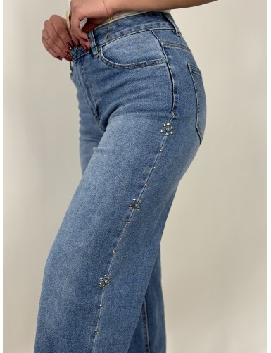 Pantalon ample jeans Coupe : droite Taille : avec passants pour ceinture Détails : dentelles, poches avant / arrière, fermeture zippée + bouton...