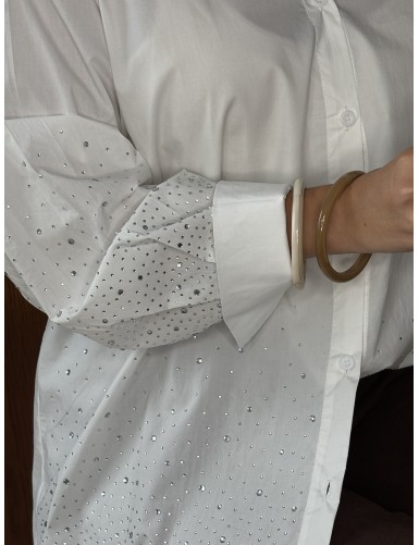 Chemise légère à sequins Col chemise Manches longues  Bouttonage à l'avant Coupe : ample Couleur : blanche Composition : 100% coton  La mannequin...
