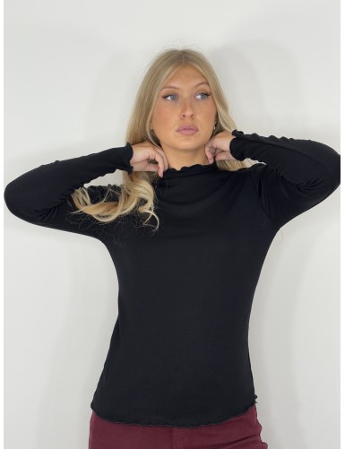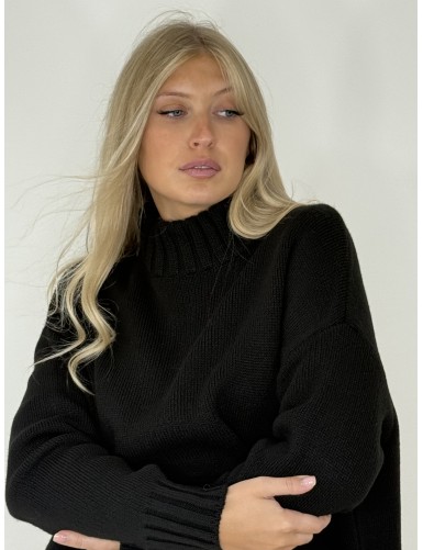 Pull longues manches col rond noir Jessica