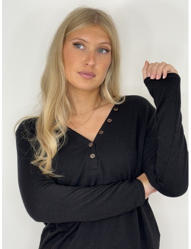 Pull longues manches col v avec boutons Couleur : Noir Composition : 48% viscose, 27% polyester, 21% nylon, 4% élasthanne La mannequin mesure 1m68...