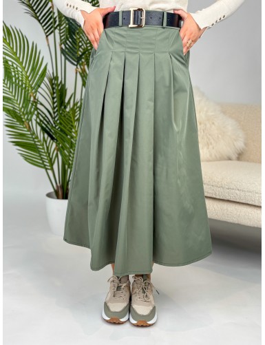 Jupe longue unie Détails : poches, ceinture Couleur : kaki Composition : 100% polyester La mannequin mesure 1m68 et porte une taille unique