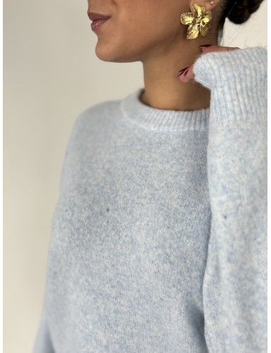 Pull col rond uni Coupe : droite, ample Matière : maille douce et chaude Manches : longues manches  Couleur : bleu ciel Composition : 60%...