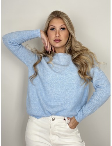 Pull col rond uni Coupe : droite  Matière : maille douce et chaude Manches : longues manches  Détails  : motifs Couleur : bleu Composition : 53%...