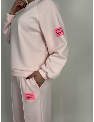 Ensemble casual uni Col rond Taille élastiquée  Longues manches  Coupe : large et fluide  Couleurs : rose Composition : 55% polyester, 39%...