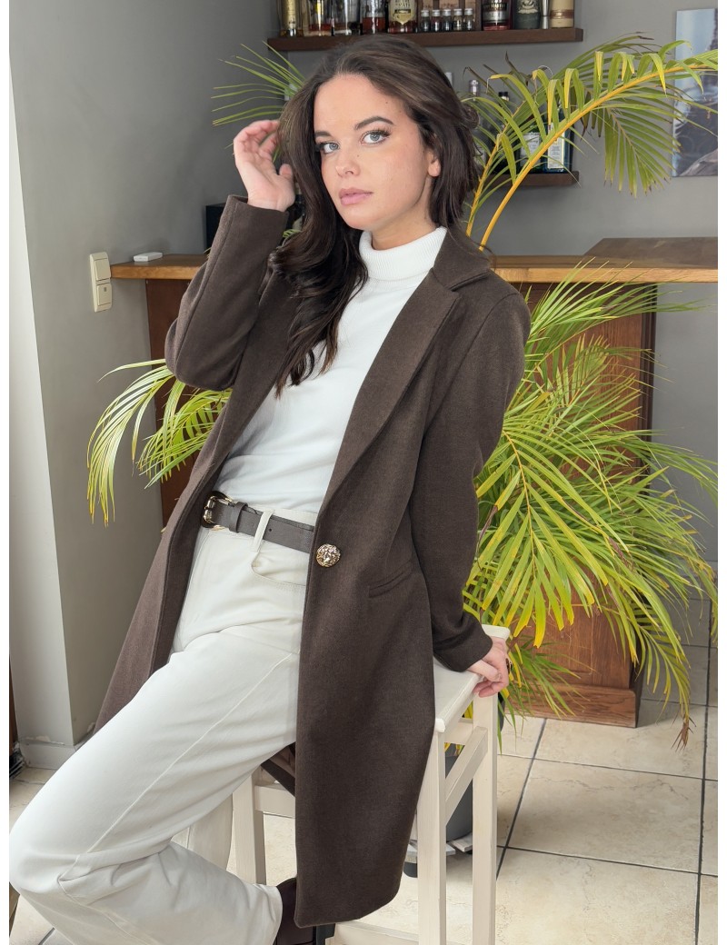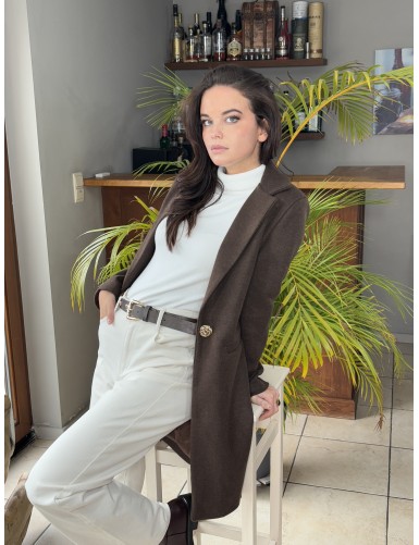 Veste avec fermeture ceinture et bouton Matière chaude idéale pour la mi-saison Détails : poches sur les côtés, ceinture,  Couleur : choco...