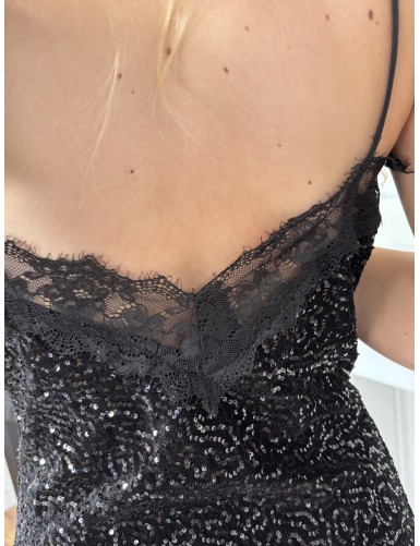 accueil Robe nuisette à sequins noire Laurence Taille : TU Couleur : Robe dentelle Sans longues Coupe ajustée Couleur : noir Composition : 100% polyester La mannequin mesure 1m65 et porte une taille unique Noir 25,00 € Prix