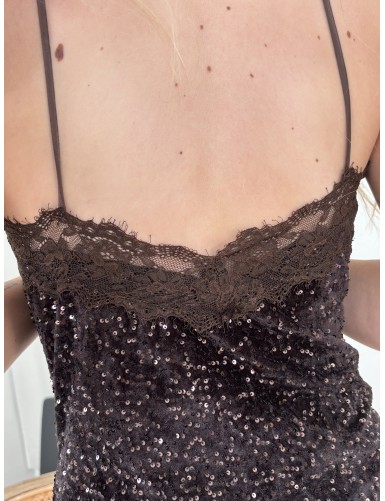 Gilet manche longues à sequins Bouton à bijoux  Coupe : droite Couleur : argenté Composition : 40% modal, 30% polyamide, 15% viscose, 10%...