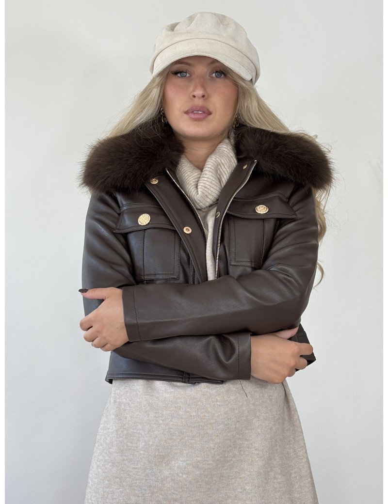 accueil Veste perfecto simili cuir choco/beige Dalia Perfecto en simili cuir choco avec col fausse fourrure beige Fermeture tirette + boutons Coupe : ample Couleur : choco + beige intérieur... Chocolat 89,00 € Prix