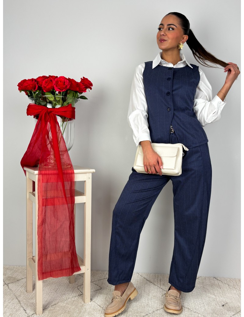 Nouveau accueil Pantalon ample ligné bleu VIVIANE Taille : TU Couleur : Pantalon ample et ligné bleu Coupe : droite Détails : poches avant, ceinture Couleur : jeans Composition : 62% polyester, 35% polyamide, 3%... Bleu 25,00 € Prix