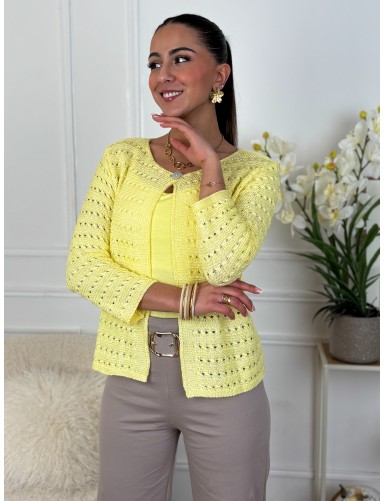 Nouveau accueil Pull en maille jaune MYRIAM Taille : TU Couleur : Pull léger en maille Coupe : droite Matière : maille douce et chaude Manches : longues manches Couleur : jaune Composition : 100% acrylique La... Jaune 20,00 € Prix