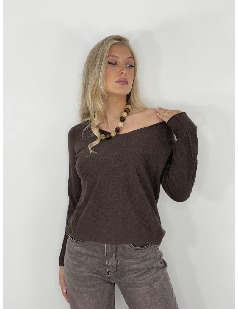 Pull rond et ample col v Coupe : droite  Matière : maille douce et légère Manches : longues manches  Couleur : beige Composition : 50% viscose,...
