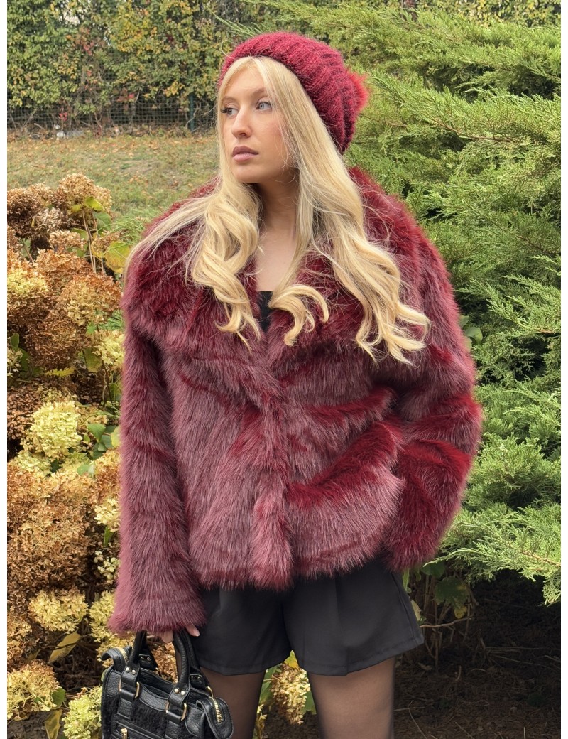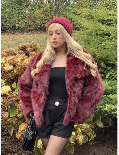 Veste à fourrure uni bordeaux ANTONIA