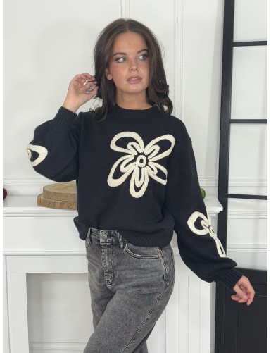 Pull à motifs de fleurs noir ROSY