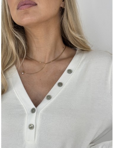 Pull longues manches col v avec boutons Couleur : écru Composition : 48% viscose, 27% polyester, 21% nylon, 4% élasthanne La mannequin mesure 1m68...