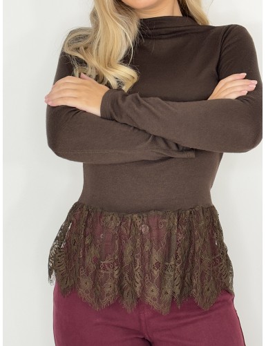 Nouveau nouvelle-categorie-pour-facebook Pull avec dentelle choco Sandy Taille : TU Couleur : Pull avec dentelle et manches longues Coupe : fluide et légèrement ample Col rond Détails : incrustations de dentelle Couleur : choco Composition... Chocolat 19,00 € Prix
