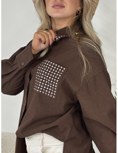 Nouveau nouvelle-categorie-pour-facebook Chemise à strass choco Luisa Taille : S/M M/L Couleur : Chemise légère avec strass Col chemise Manches longues Bouttonage à l'avant Coupe : ample Couleur : choco Composition : 45% cotton, 42% viscose,... Chocolat 29,00 € Prix