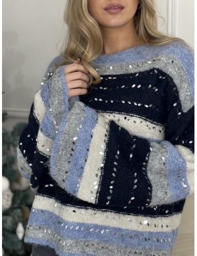 Pull ligné à sequins bleu Yasmine