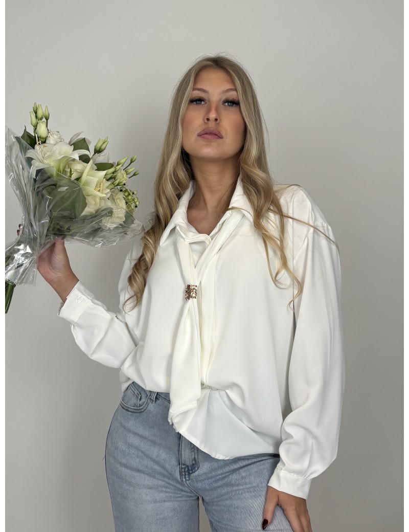 Chemise légère lignée à strass Col chemise Manches longues  Bouttonage à l'avant Coupe : ample Couleur : bleu ciel Composition : 55% polyester,...