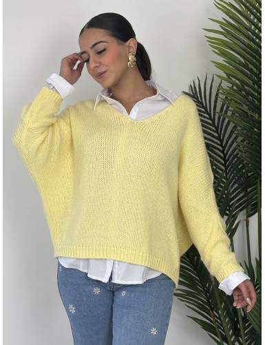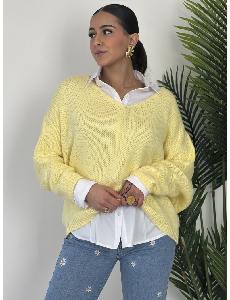 Pull col v uni jaune Paula