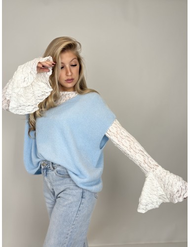 gilet uni à col V et boutons Matière chaude idéale pour la mi-saison Couleur : bleu ciel Composition : 53% polyester recyclé, 37% polyester, 8%...