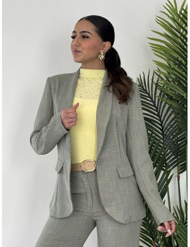 Nouveau nouvelle-categorie-pour-facebook Blazer uni kaki GERALDINE Taille : S/36 M/38 L/40 XL/42 Couleur : Blazer uni bleu Poche à rabat décoratives Manches longues Couleur : kaki Composition : 51% viscose, 46% polyamide, 3% élasthanne La mannequin... Kaki 35,00 € Prix