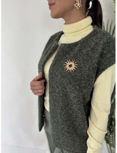 Gilet ouvert à broche kaki Solène