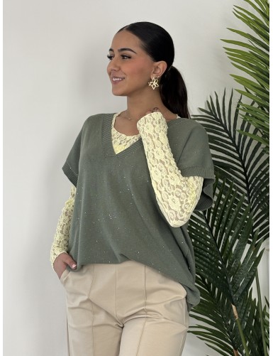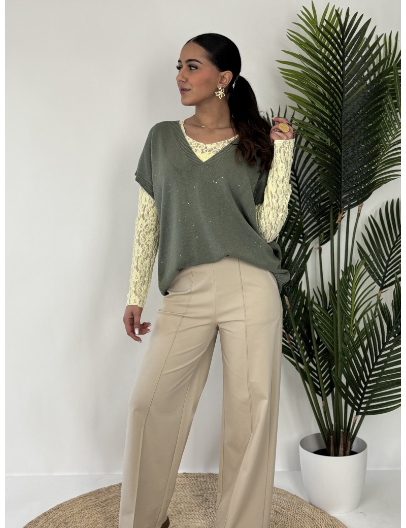 Pull col V sans manche kaki DARWIN